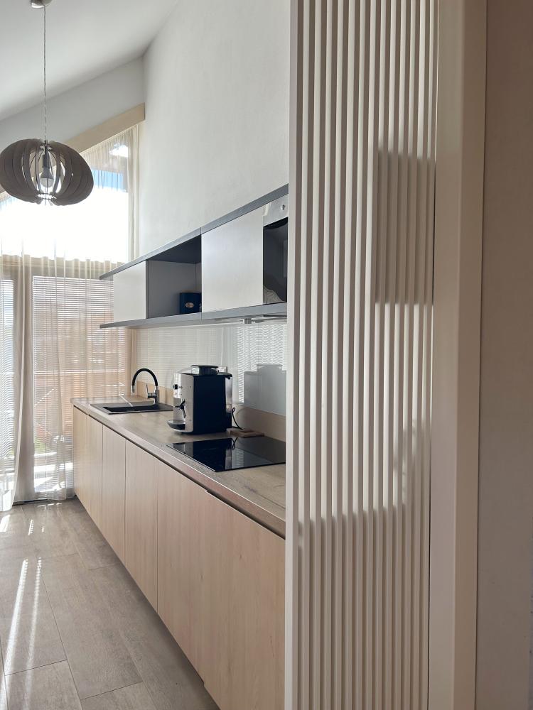 Štandardom je kompletne vybavená kuchyňa a mikrovlnou rúrou, vstavanou indukčnou varnou doskou a umývačkou riadu.